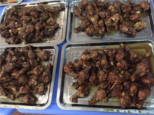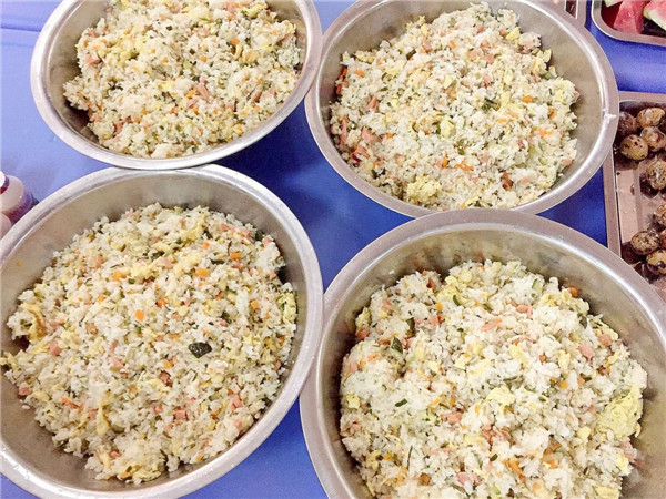 中午11点,一道道热气腾腾、色彩各异、美味飘香的佳肴展现在孩子们的面前,有扬州炒饭、鹌鹑蛋、脆皮肠、红烧狮子头、酱香鸡腿等……看着眼前热气腾腾、浓香扑鼻的美食,眼里闪烁着惊喜与幸福的光芒,个个垂涎欲滴,老师们看了忍俊不禁!