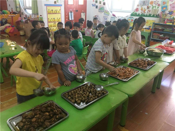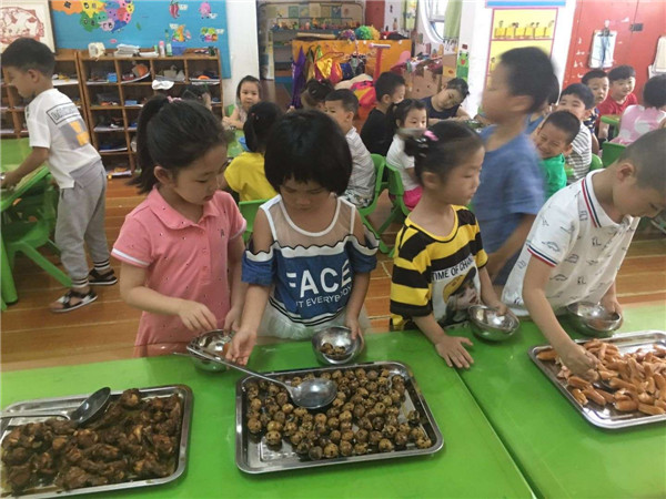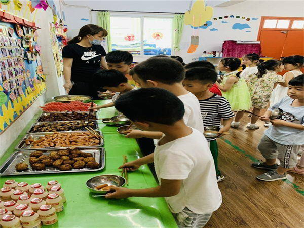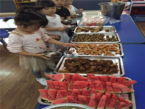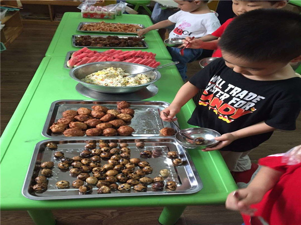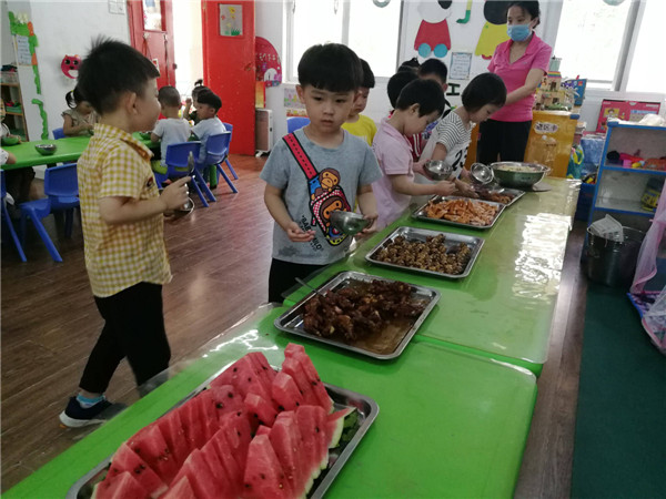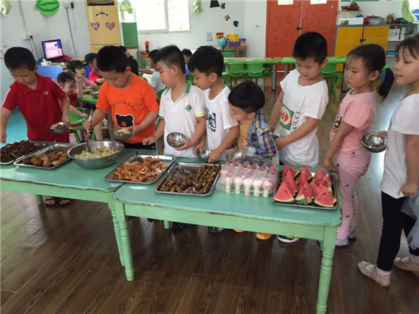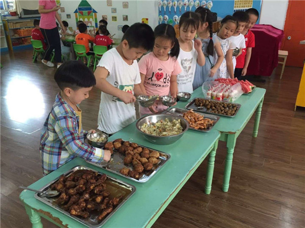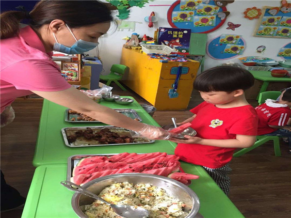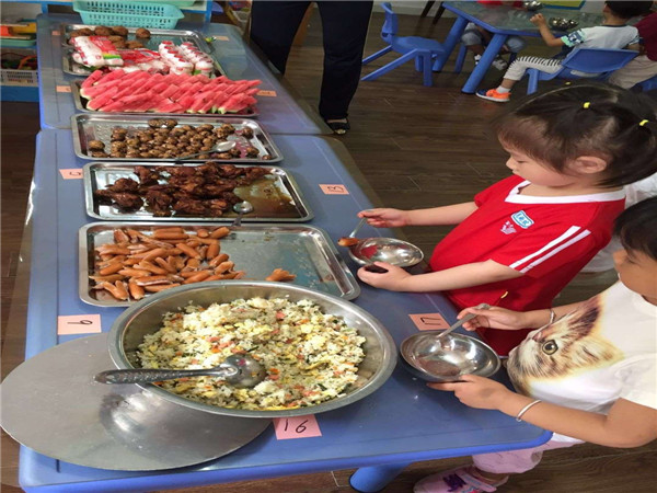 “自助大餐”在孩子们的欢呼声中拉开了序幕。“哇,好香啊!”“哇,这么多好吃的!”“你看!这里都是我喜欢吃的!”……孩子们看着种种美食宛然成了“小馋猫”,马上自觉地排好队伍,自主有序地挑选起喜爱的食物。