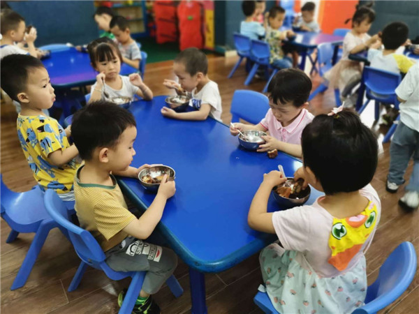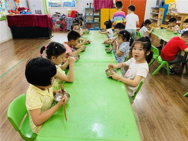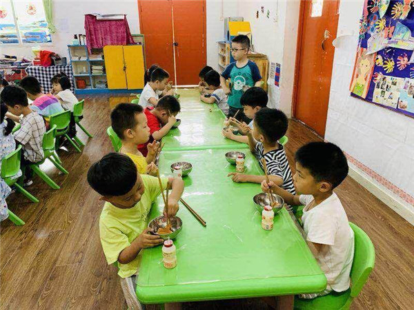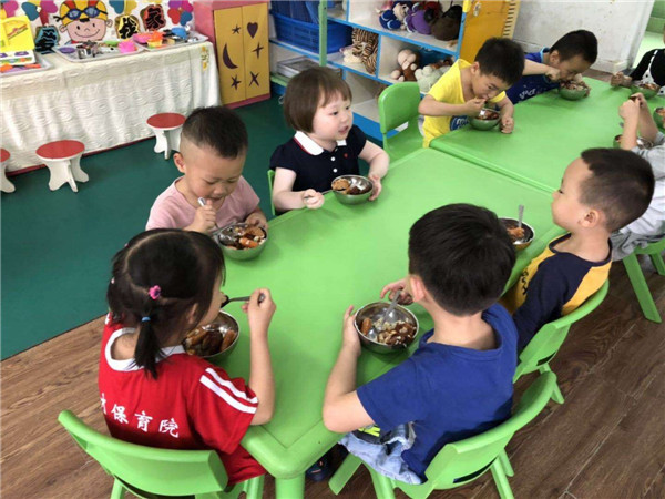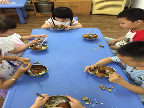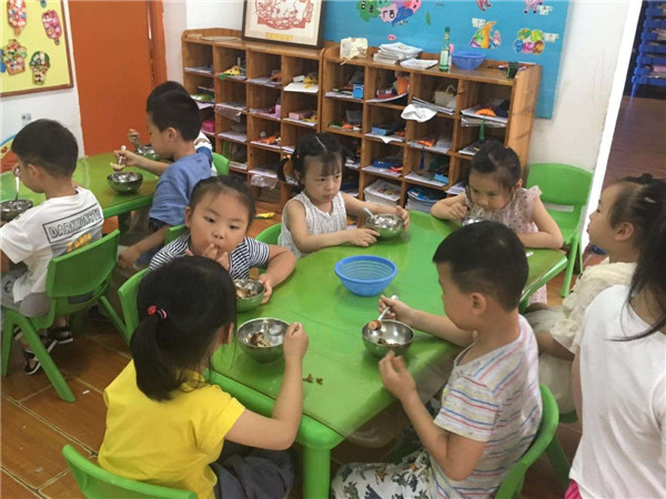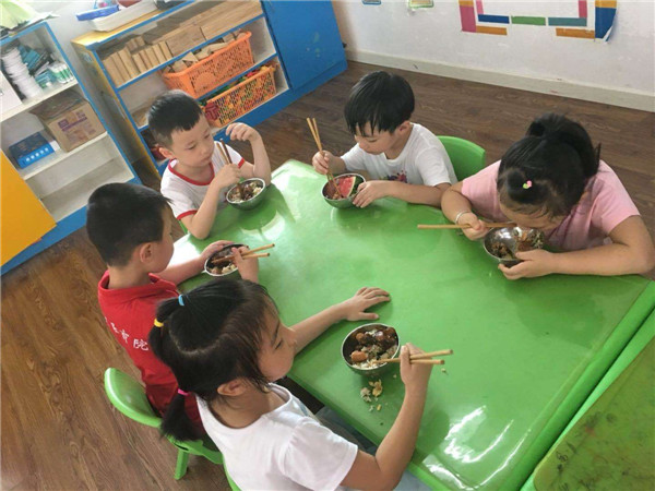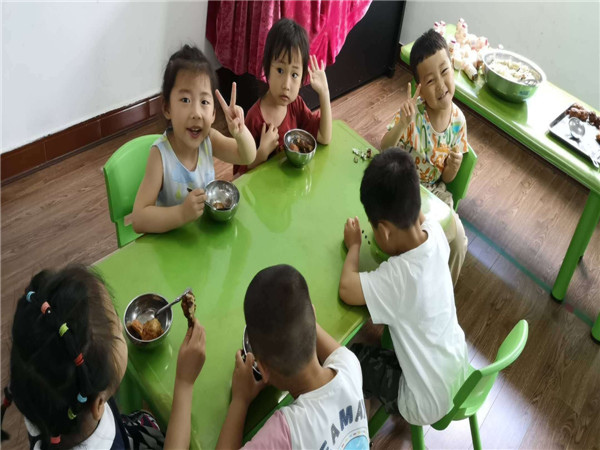 孩子们有的还一边吃一边交流“心得”。很多孩子脸上还露出了满足的笑容,都抱着肚子直嚷嚷“好饱呀”“真好吃”“我今天吃了很多”。