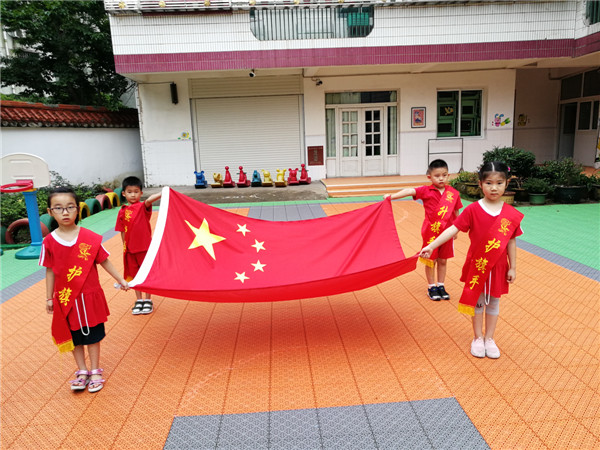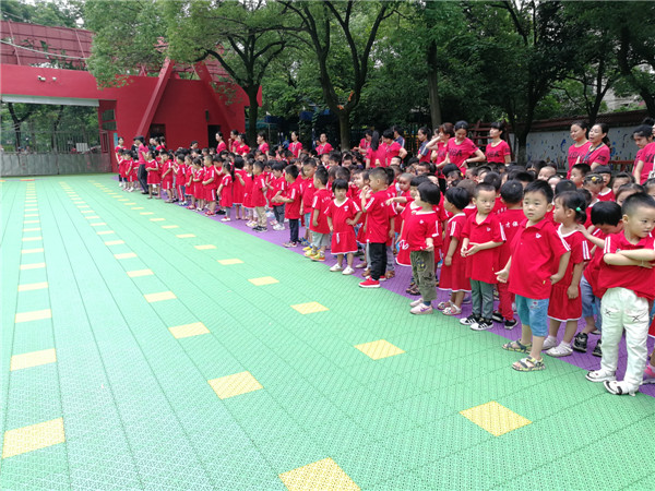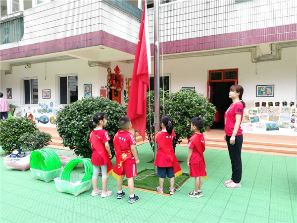 2019年6月17日早晨,南昌市育才保育院举行了升旗仪式。小朋友们在老师的带领下,整齐有序的排好了队伍,等待着升旗仪式的到来。升旗仪式正式开始,升旗手们迈着矫健的步伐迎风走到旗杆下,全体师生在嘹亮的国歌声中缓缓注视着国旗升起。