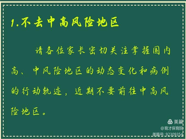 一、各位家长要根据国内疫情风险等级变化情况,适时动态调整完善相关防控措施,依法依规、精准管控,有效防范和阻断疫情传播。