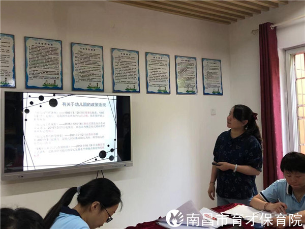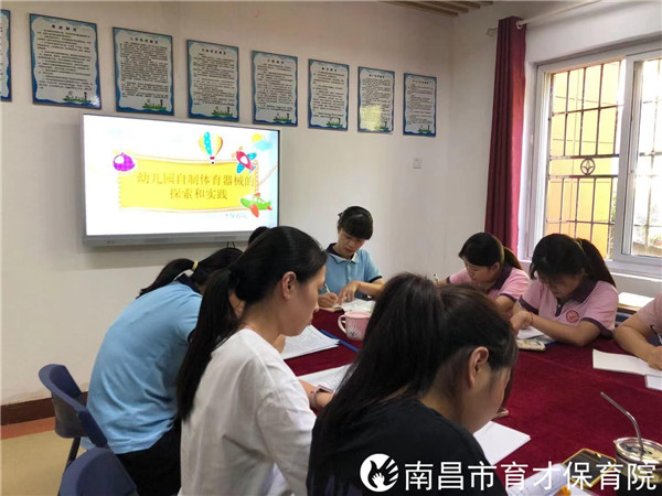 9月23日,南昌市育才保育院组织全体教师对《幼儿园自制体育器械的探索和实践》和《幼儿园工作规程》进行培训学习。
