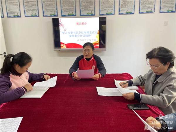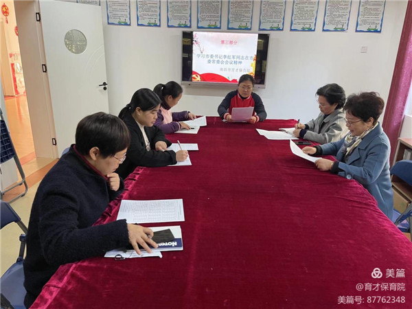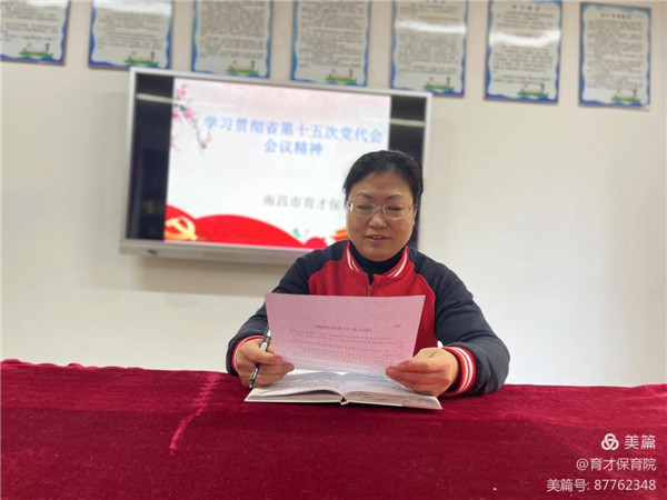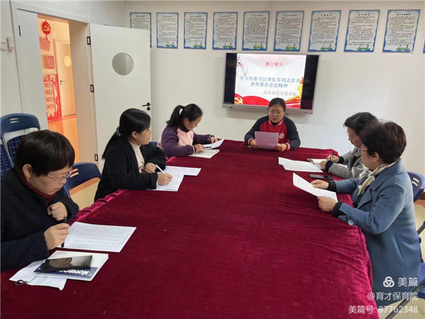 围绕学习党的十九届六中全会精神、省第十五党代会精神等内容,院党支部组织党员教师召开理论研讨会,大家分享交流了自己的学习心得,并表示在今后工作中爱岗敬业、锐意进取,努力为育才保育院的高质量发展发挥党员的先锋模范作用。