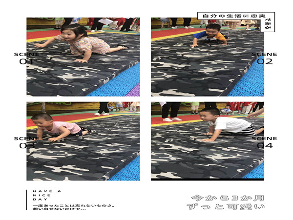 接下来是此次竞赛的集体项目了,中班、大班组的接力跑比赛和小班组的蚂蚁爬比赛啦!