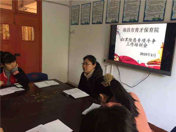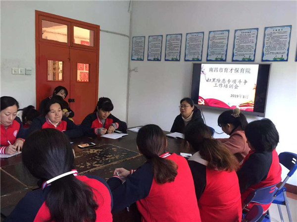 为确保扫黑除恶斗争工作落到实处,2019年3月4日中午,南昌市育才保育院召开了全园“扫黑除恶”专项斗争工作会议,保证我园“扫黑除恶”斗争工作正常有序开展。