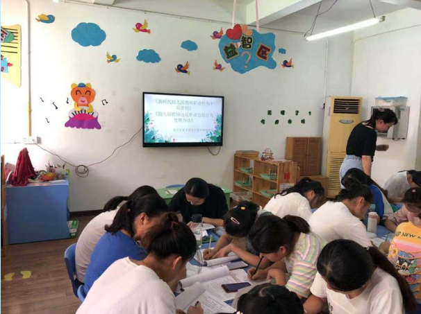 “教师是太阳底下最光辉的职业”为了明确新时代教师职业规范,划定基本底线,进一步加强师德师风建设,规范办园行为,提高保育和教育质量,促进幼儿身心健康和谐发展。2019年8月30日,南昌市育才保育院组织教师开展《新时代教师职业行为十项准则》《幼儿园教师违反职业道德行为处理办法》、《幼儿园教师专业标准》学习培训。