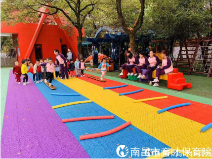 《幼儿园工作规程》中明确指出:“游戏是对幼儿全面发展教育的重要形式”、“因地制宜地为幼儿创设游戏条件”。《幼儿园指导纲要》中同时指出:“玩是幼儿的天性”,“要发现、保护和引导幼儿固有的天性”,“以游戏为基本活动”,游戏是幼儿童年生活不可缺少的一部分。它是孩子童年的欢乐、自由和权利的象征。丰富多彩的游戏不仅可以促进幼儿身心健康发展,而且能增长幼儿的知识,发展智力。结合我院实际,10月中旬,我院组织小班组教师进行了以“让幼儿在游戏中获得快乐”为主题的体能教研活动。