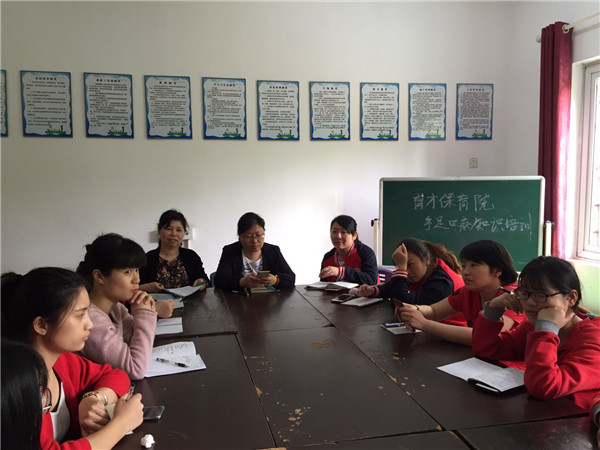 春季是幼儿手足口病的高发季节,为了增强我园教师对手足口病的防范意识,提高预防幼儿常见疾病的能力,对减少和降低疾病的发生和流行,保护幼儿的健康,近日,育才保育院院长黄丽玲与保健医师陶敏对全院教师进行了手足口病防控知识培训。