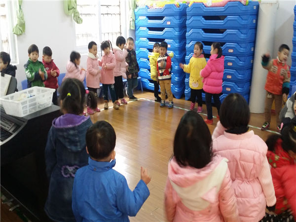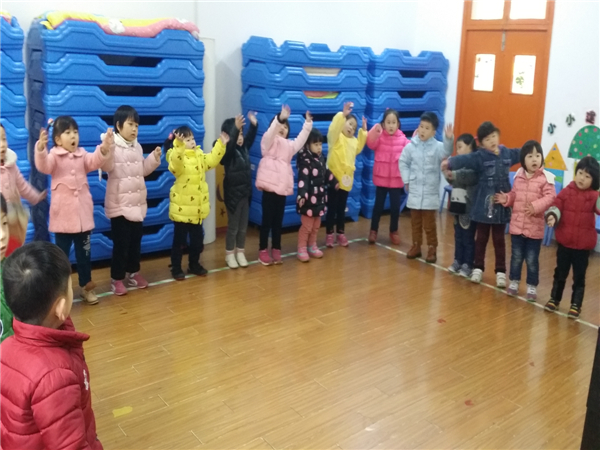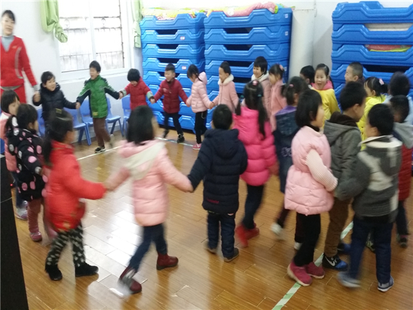 我们小手拉大手转圈圈结束。
