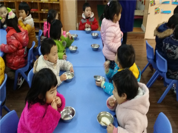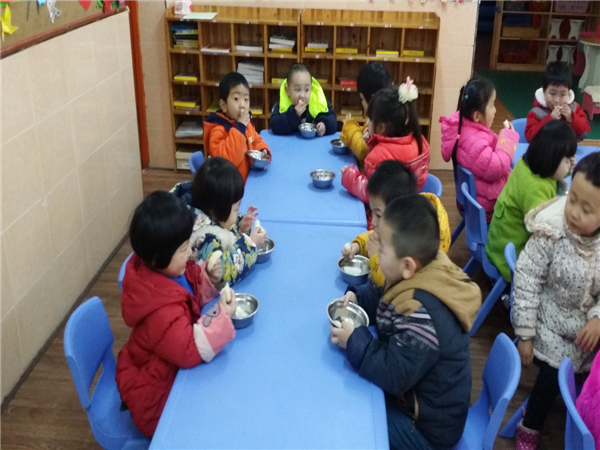 2016年1月6日,我们的点心是水果梨子,梨子真甜啊,甜到我们的心里去了,老师说吃梨子可以润肺,我们喜欢吃!