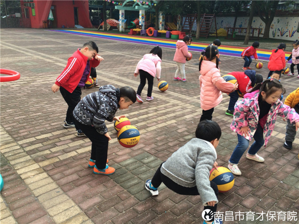 篮球课上,孩子们都在努力练习左右手交替换球!