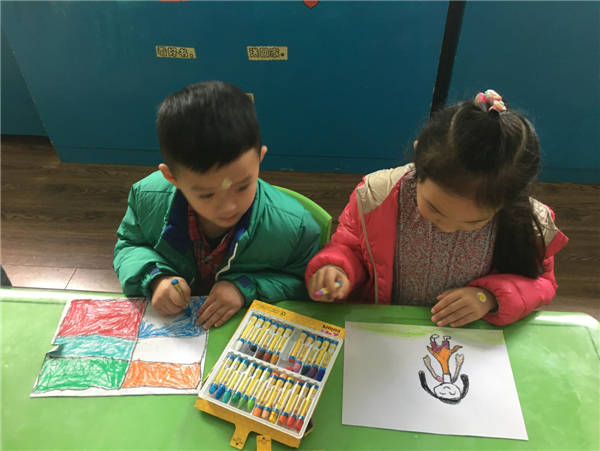 小小画家们一拿到画纸,迫不及待的就开始进行创作了,活动中,小伙伴们还会相互鼓励,真开心!