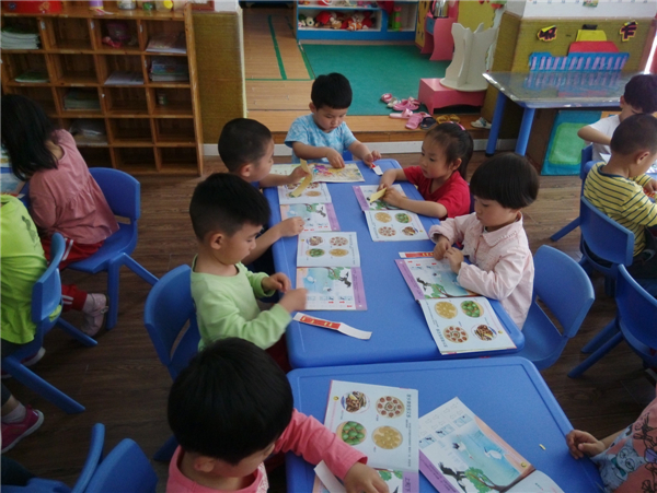 ”这两个空间方位词。通过操作活动进一步感知上下空间方位的相对性。