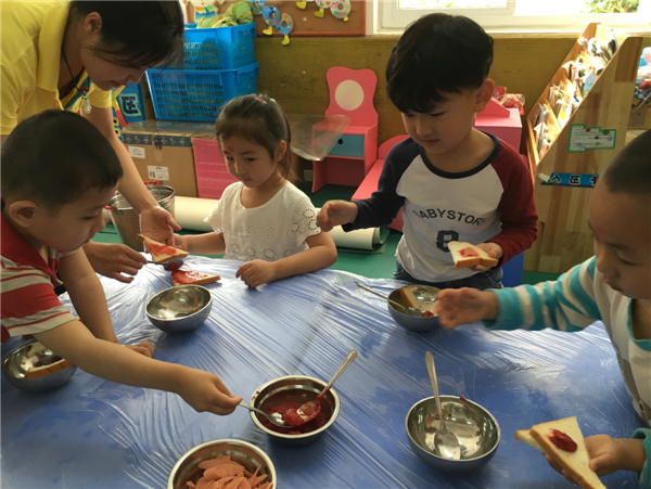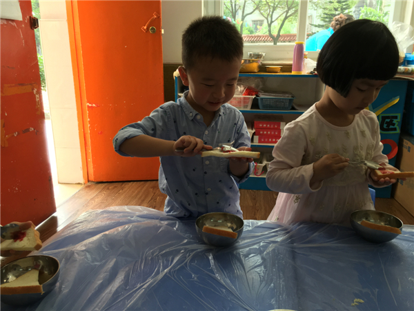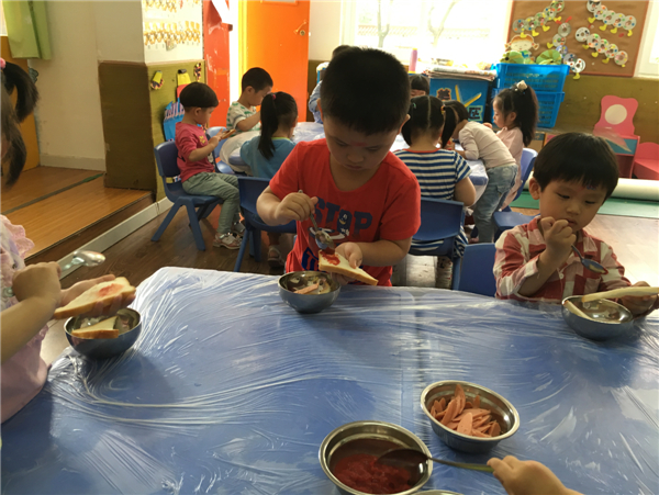 我要认真的刷番茄酱,不能刷到外面去了。