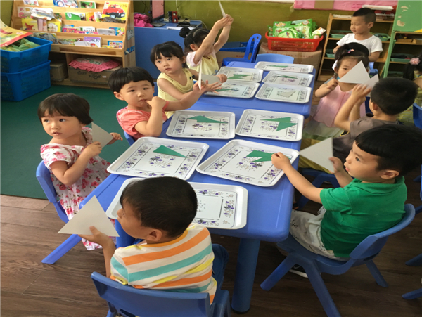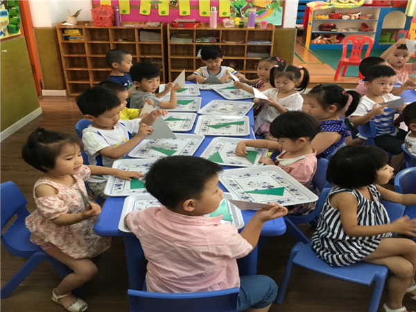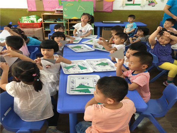 今天,我们学习了蒙数:《感知三角形》我们感知了各种三角形的外形特征,尝试了找出形状完全相同的三角形,并且知道三角形的特征是:三角形有三个角和三条边。我们上课都非常认真,表现的特别棒!