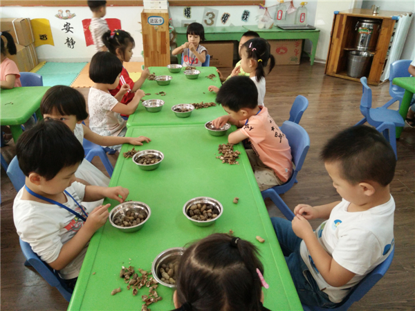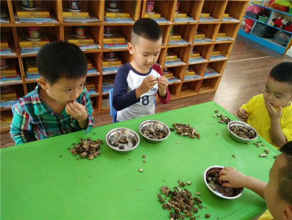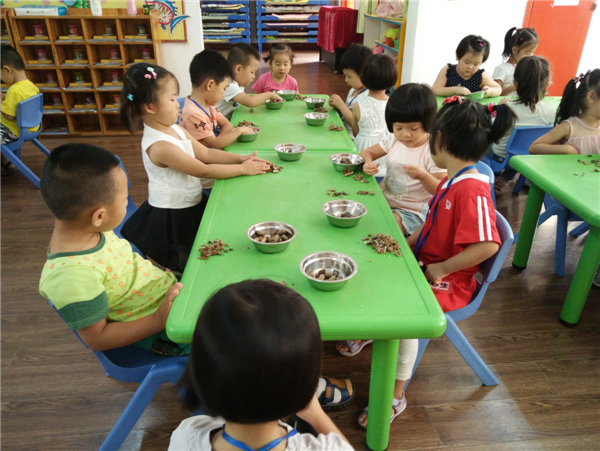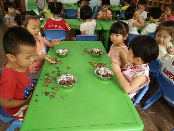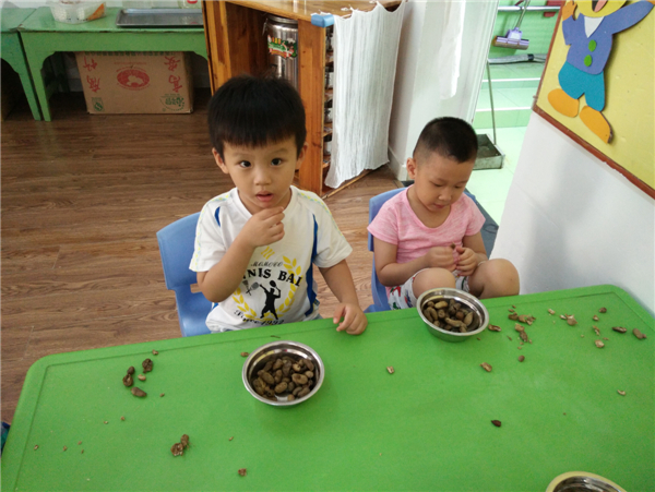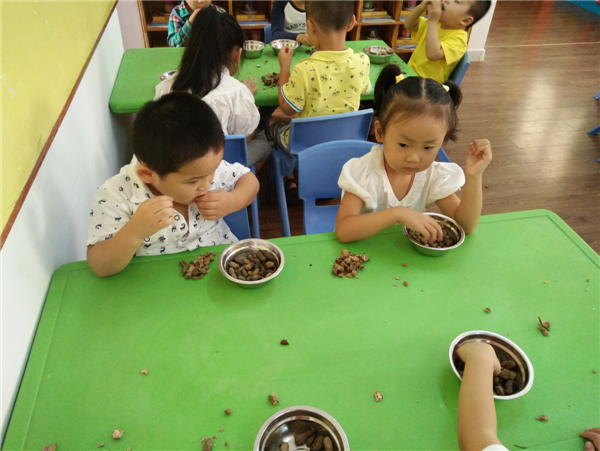 课间点心时间到!今天吃的是——水煮花生。由于花生的营养极其丰富所以它具有较突出的食疗保健作用,常食花生可促进脑细胞发育 、增强记忆力、提高智力、可治营养不良、痰多咳嗽等。看!我们班的小朋友吃的多香啊!!!