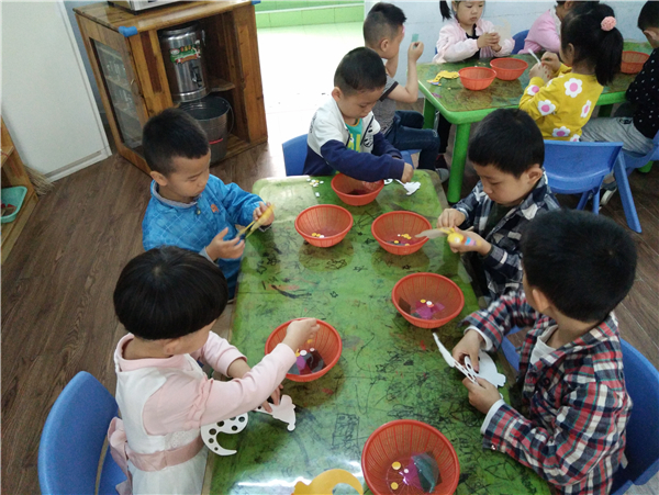 《影子怪兽》让幼儿了解影子成像的原理,能用玻璃纸把恐龙身体上的镂空区域粘贴好,并能够在游戏中体验自制玩具带来的乐趣。