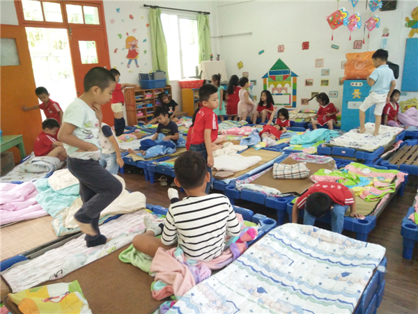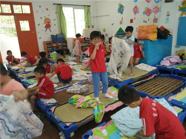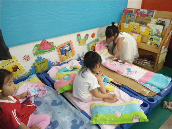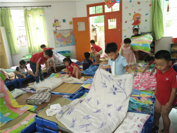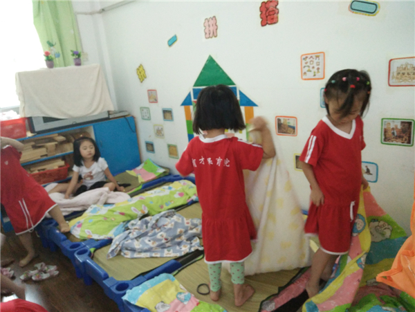 我上大班了,是大班的大哥哥大姐姐了,看,起床之后我会自己穿衣叠被子了!!!