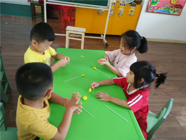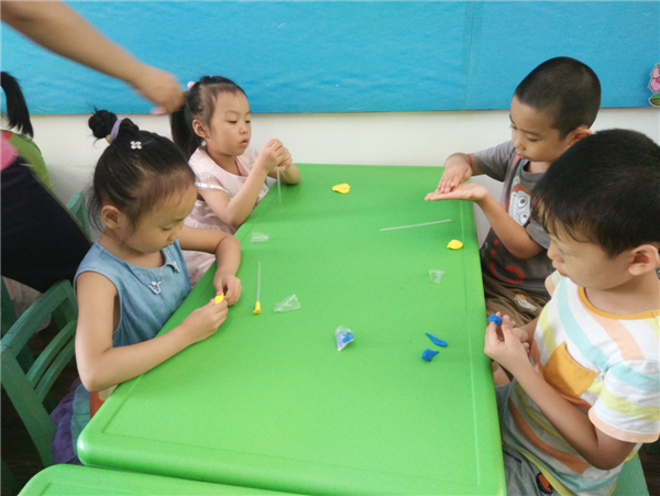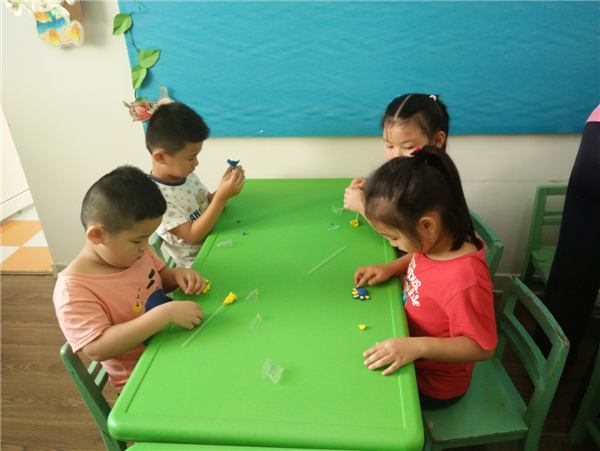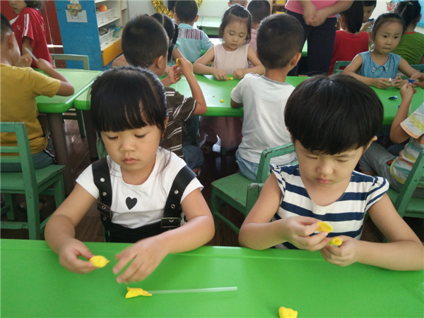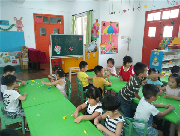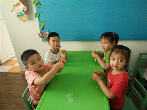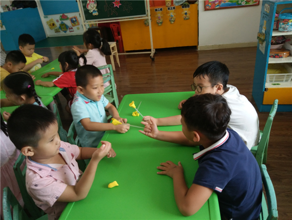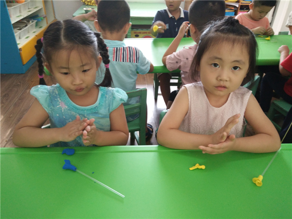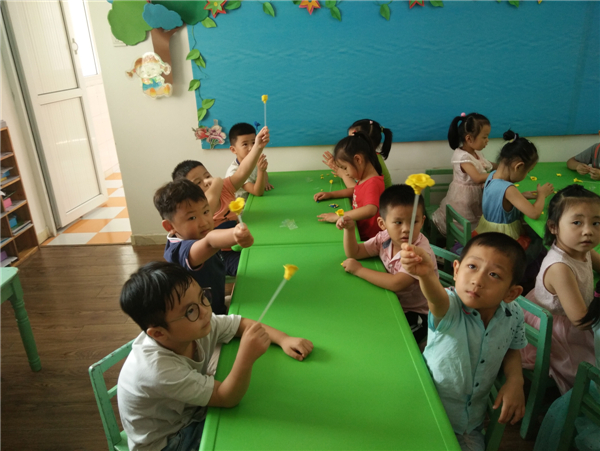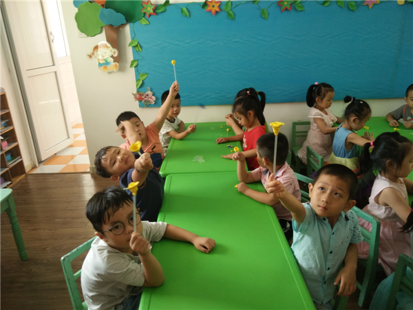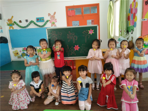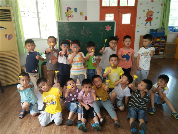 教师节,幼儿通过自己动手制作,展示自己的作品向老师表达节日的祝福。