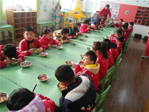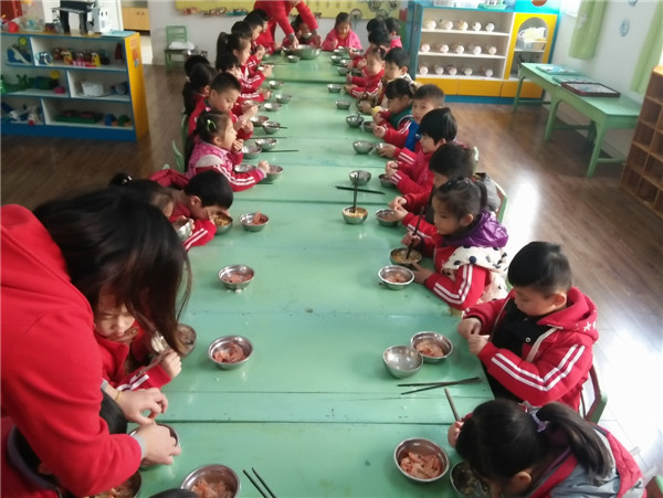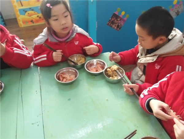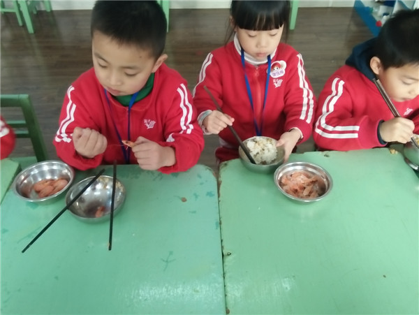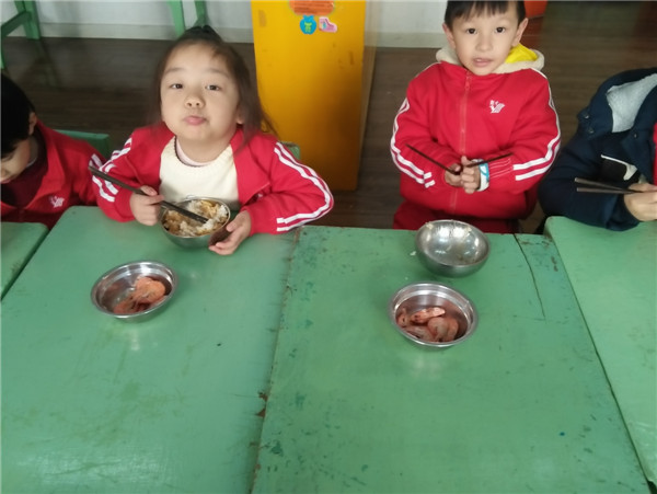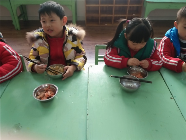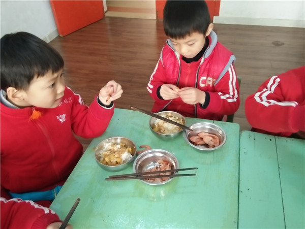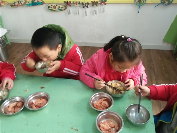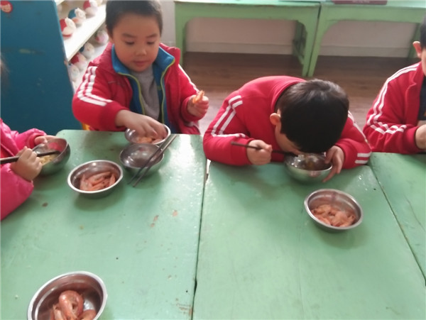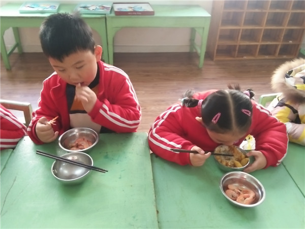 吃的是孩子们喜欢的基围虾和土豆烧肉,他们吃的津津有味。