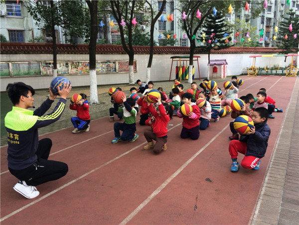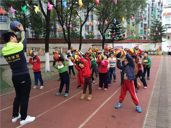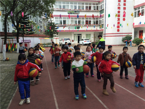 今天的篮球课上,雪碧老师带领小朋友学习了篮球操,跟着音乐的节奏,小朋友都在认真学习。