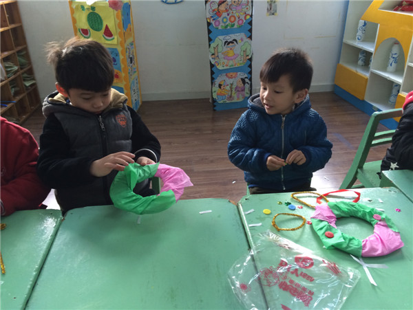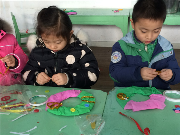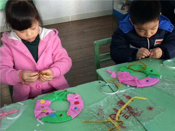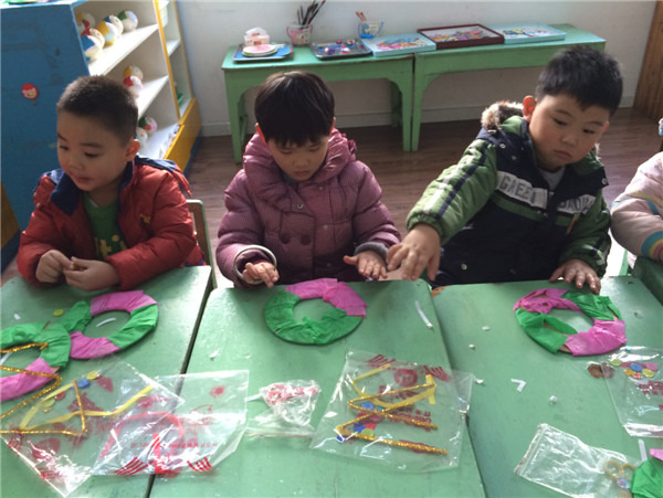 圣诞节要到咯!小朋友们亲手制作一个漂亮的圣诞花环,增加节日的喜庆