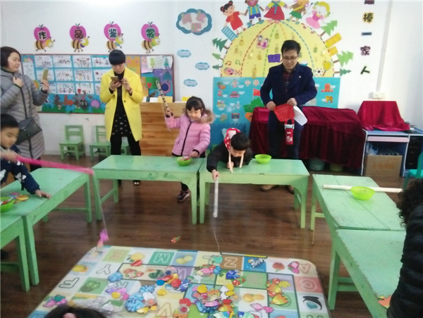2016年12月30日上午,我园组织开展了亲子游园活动。在大一班为家长和小朋友准备了钓鱼游戏,它对锻炼孩子的动手能力和大脑发育都有很大好处哦=。小朋友们都玩的非常开心,有的孩子玩的都舍不得走,意犹未尽。