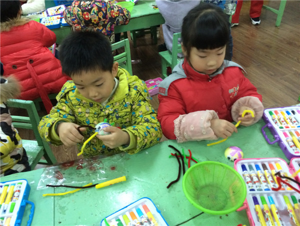有趣的美工活动开始啦,今天小朋友制作了可爱的小蜘蛛,通过剪、折、插的基本动作把蜘蛛作品完成。制作完后,小朋友们还不亦乐乎的玩起了自己的小蜘蛛。