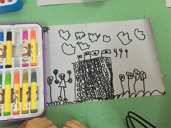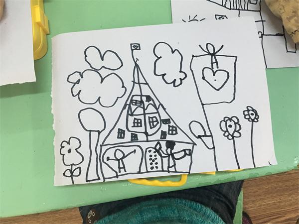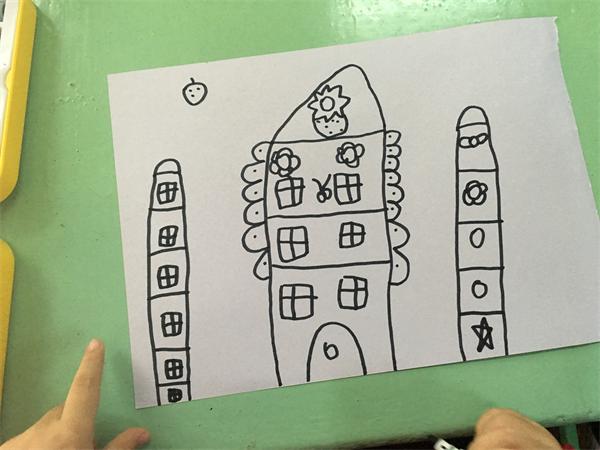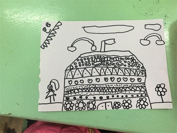 我的房子最特别这个读本孩子很喜欢。他们从读本中了解了各种各样的房子。在拓展活动中让孩子们来画出自己心中独一无二的房子,孩子们画了西瓜房子,地铁房子,风车房子等等。我们来看看吧!